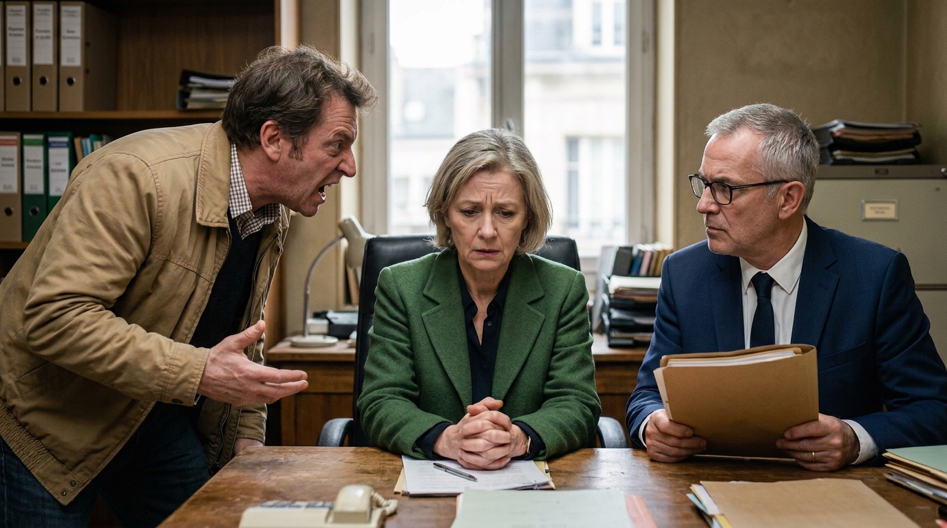 Le lendemain, dans la salle de réunion du cabinet juridique, Antoine affichait une assurance impeccable. Costume parfaitement ajusté, dossier soigneusement ordonné devant lui. Sophie, elle, portait une robe simple et tenait un petit sac à main.